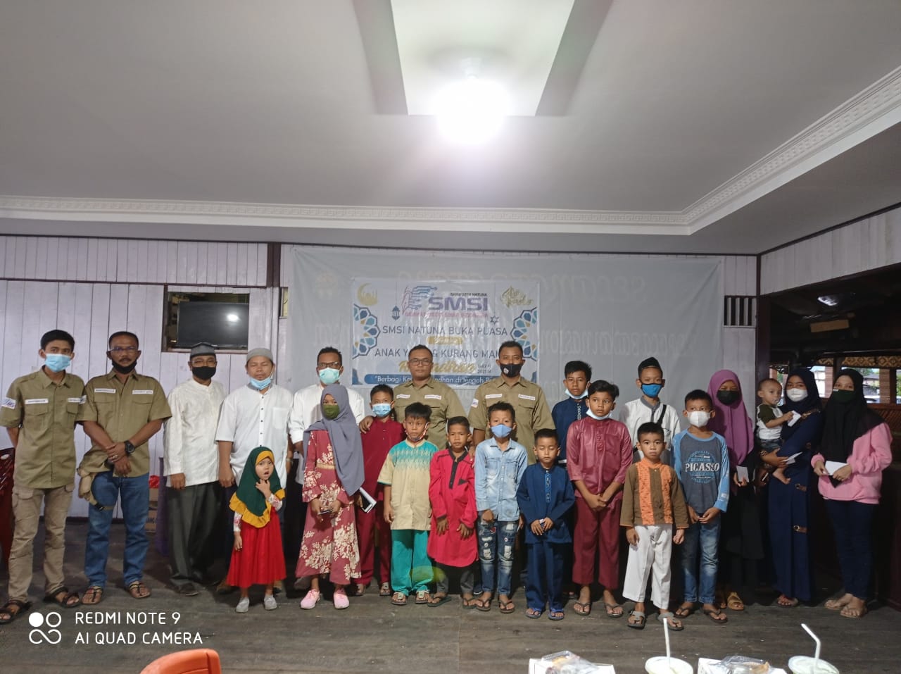 Diawali berbuka puasa bersama, jajaran organisasi Media Siber Indonesia ini memberikan santunan kepada belasan anak yatim, piatu dan kaum dhuafa di salah satu rumah makan, Kelurahan Ranai, Kecamatan Bunguran Timur, Kamis 29 April 2021 sore.