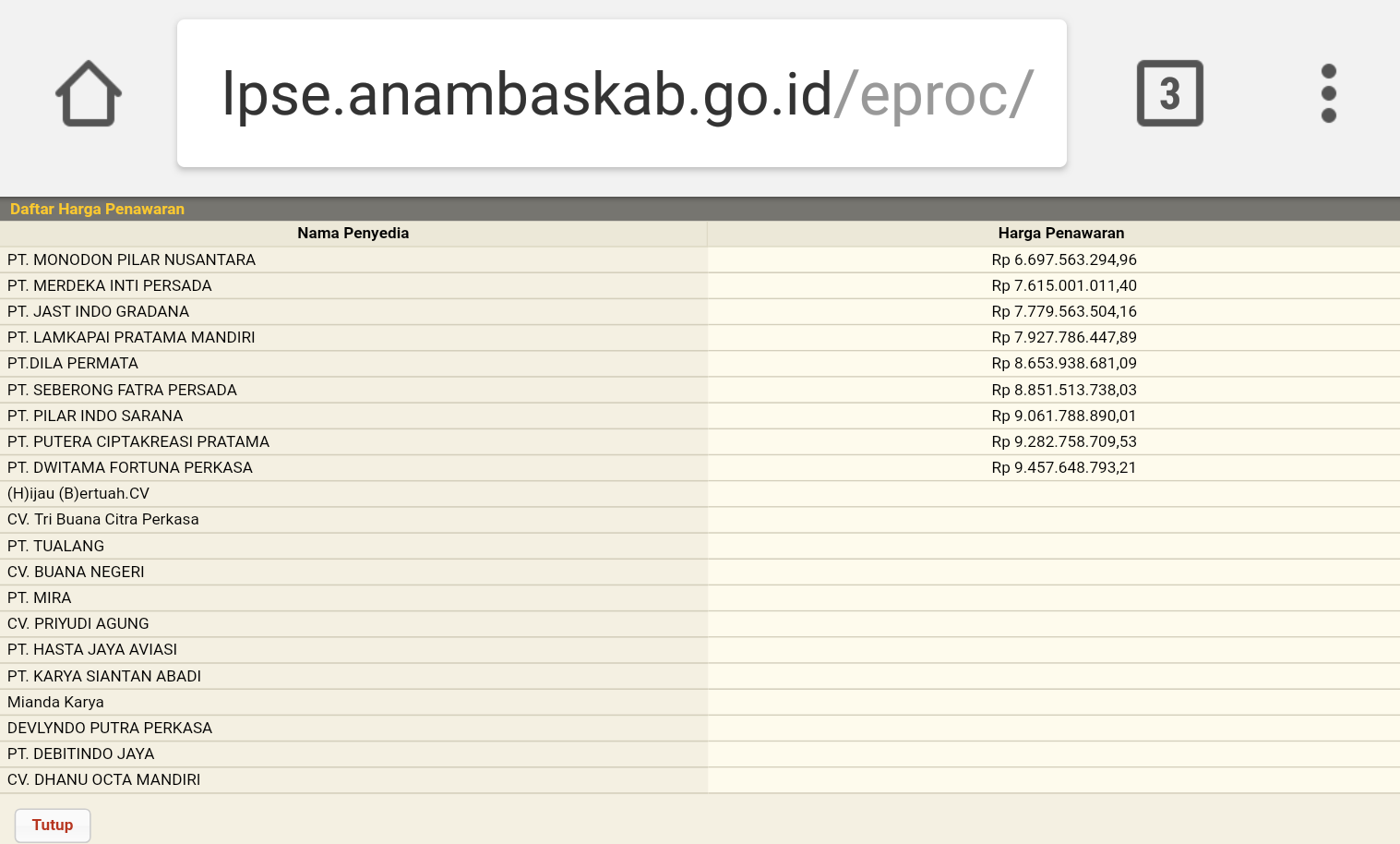 Hasil pantauan metrosidik dihalaman web resmi Layanan Pengadaan Secara Elektronik (LPSE) Kabupaten Kepulauan Anambas pada tanggal 6 Nopember dengan kode lelang yang bernomor 2232365 tidak dapat diakses. Selain itu, pembatalan Lelang kegiatan tersebut belum diumumkan berita acaranya. Sehingga, secara resmi belum dapat diketahui pasti dasar pembatalan lelang Land Clearing Kantor OPD.