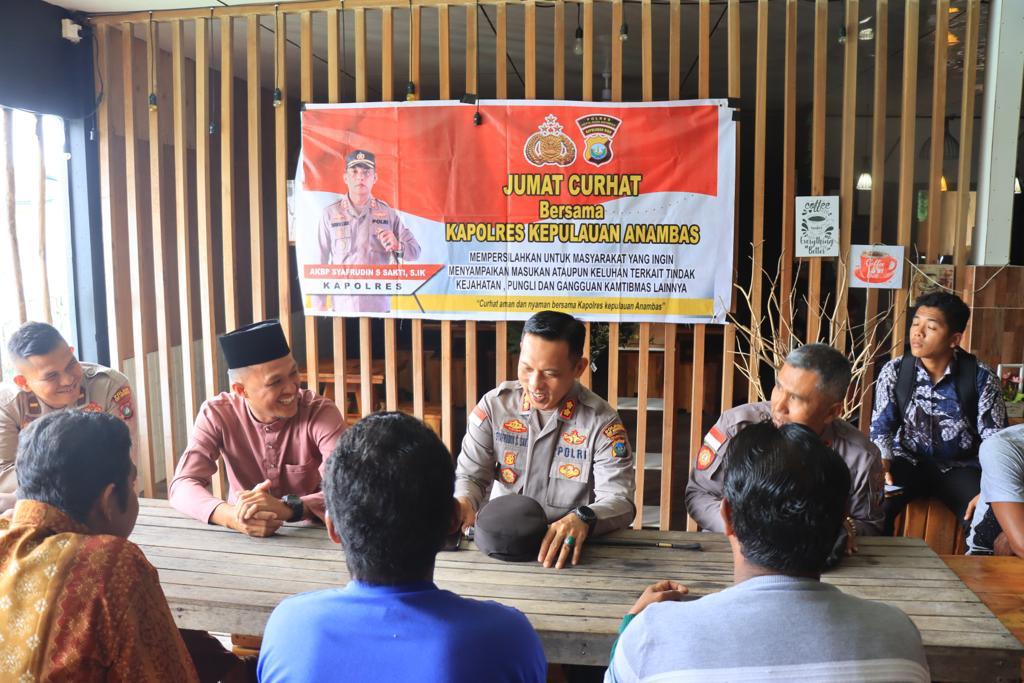 Anambas, Metrosidik.co.id – Kapolres Kepulauan Anambas melakukan kegiatan jumat curhat yang dilaksanakan di Cafe Pondok Nelayan Desa Sri Tanjung, Kecamatan Siantan, Kabupaten Kepulauan Anambas, Jumat(31/03/2023).