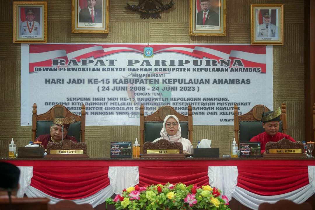 Anambas, Metrosidik.co.id – Hari jadi Kabupaten Kepulauan Anambas ke-15, Bupati Anambas menghadiri rapat paripurna yang digelar Dewan Perwakilan Rakyat Daerah (DPRD) Kabupaten Kepulauan Anambas bertempat di Gedung DPRD Anambas ruang rapat paripurna lantai 1 (satu), Jl.Imam Bonjol, Jumat (24/06/2022)