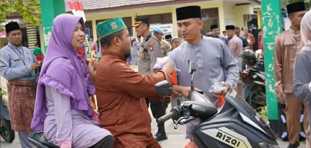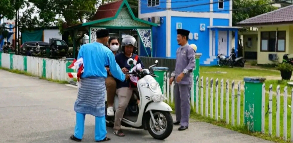 Selanjutnya bendera yang telah terkumpul dibagikan kepada masyarakat di sejumlah titik diantaranya, simpang 3 kantor Bupati lama, Tugu Buak, Tanjung Lambai, Simpang 3 Arung Hijau, Masjid Jamik Baiturrahim.