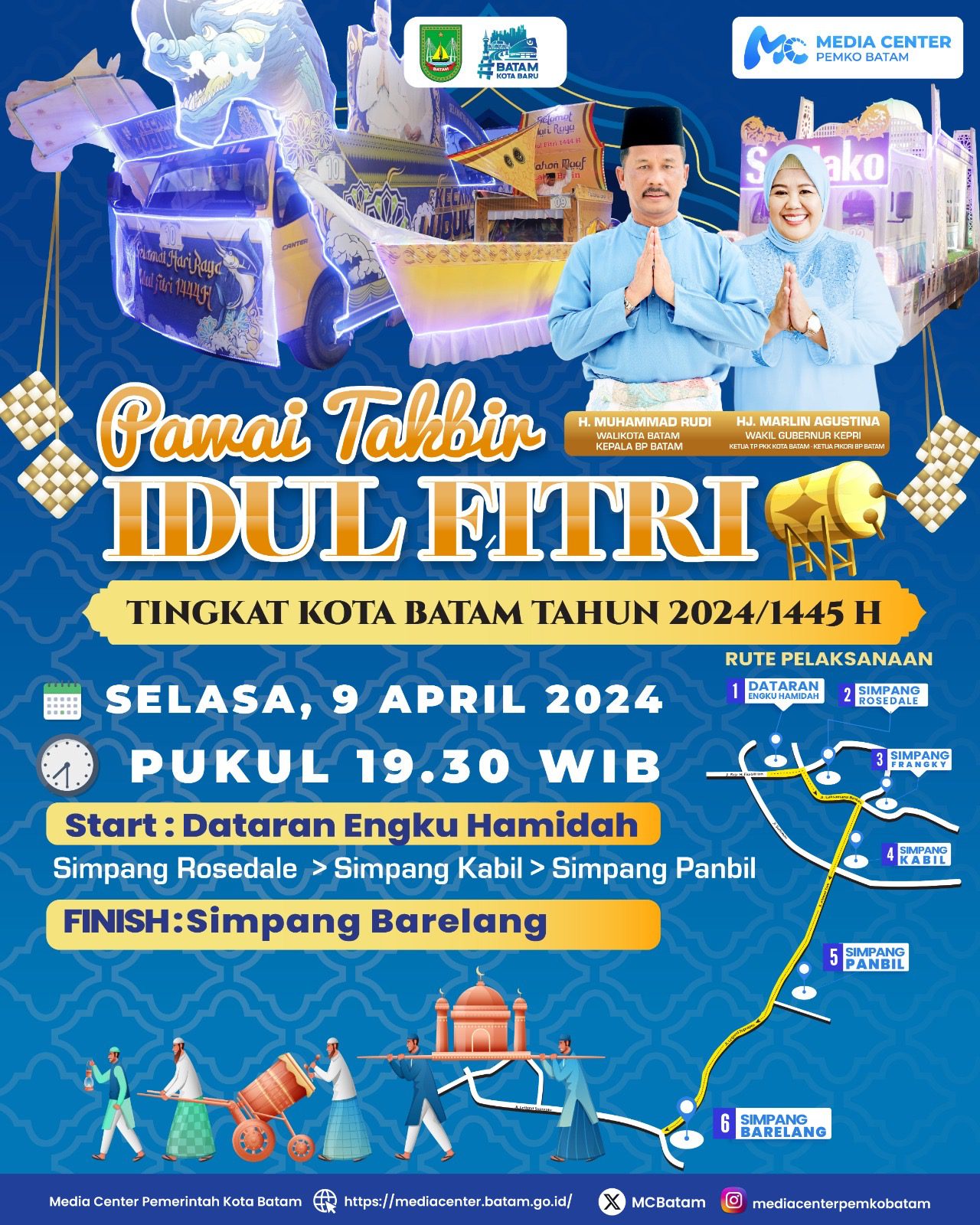 Metrosidik.co.id – Pemerintah Kota (Pemko) Batam akan menggelar Pawai Takbir Keliling untuk memeriahkan malam penyambutan Idul Fitri 1445 Hijriah.