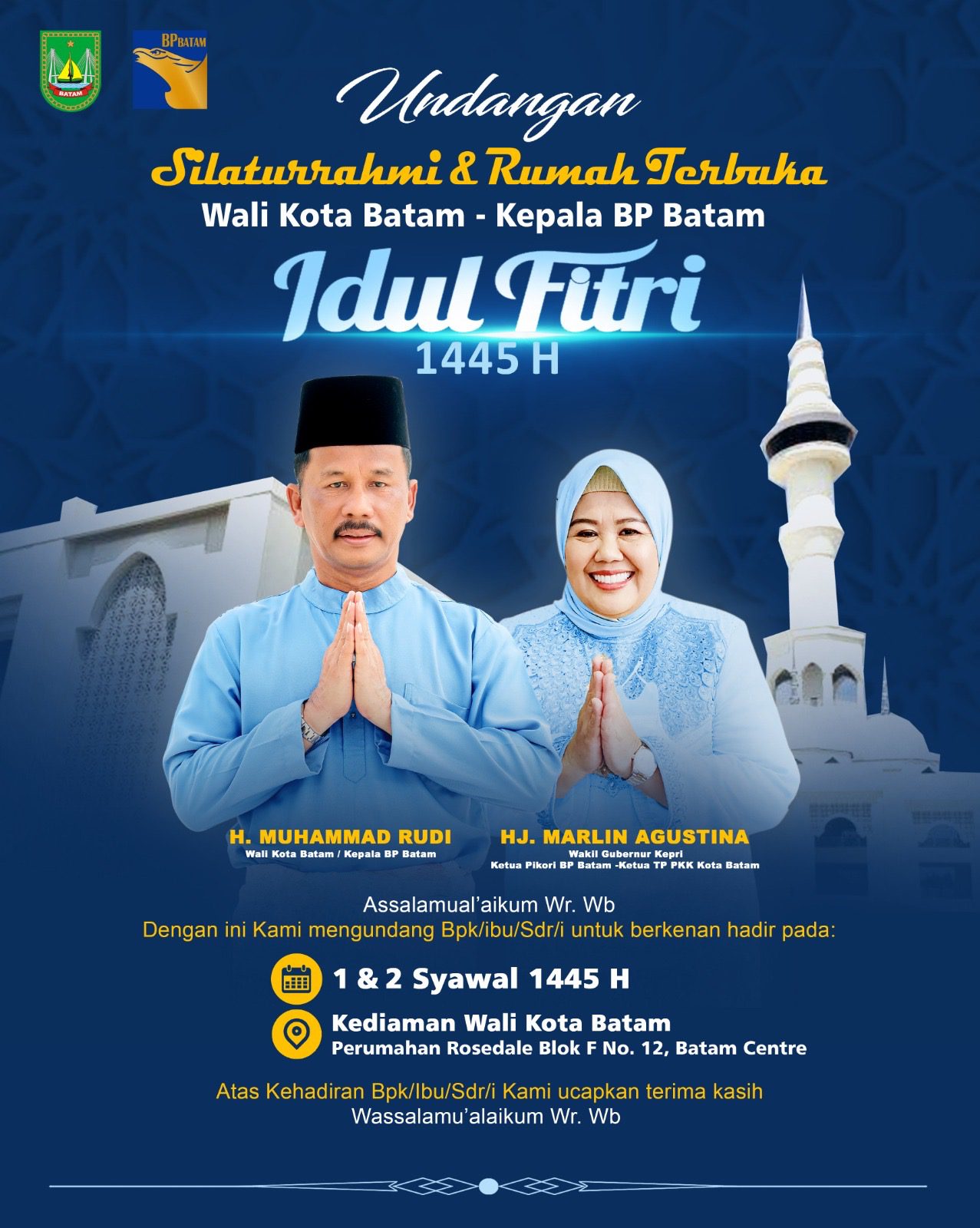 Metrosidik.co.id – Wali Kota Batam, Muhammad Rudi, bersama Wakil Gubernur Kepri, Marlin Agustina, menggelar halalbihalal (silaturahmi & rumah terbuka) di momen Idulfitri 1445 Hijriah.
