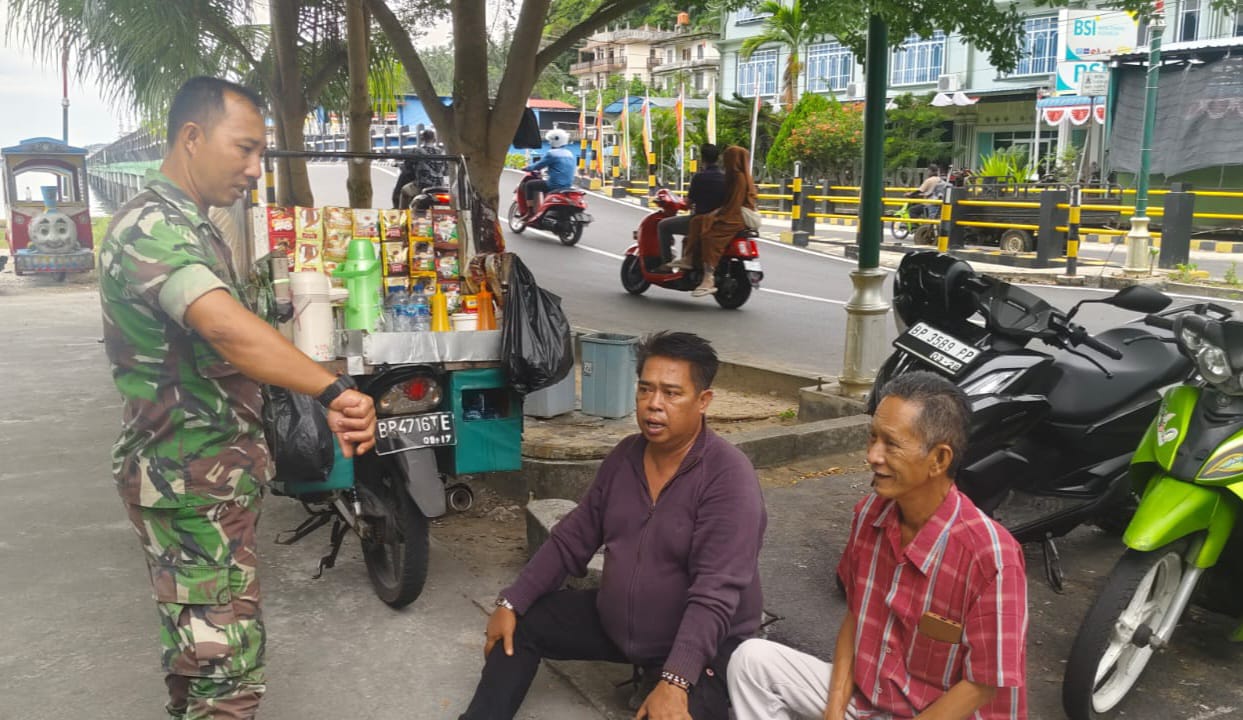 Anambas, metrosidik.co.id – Sertu Ganda Fitrianto, personel Koramil 02/Tarempa Kodim 0318/Natuna, melaksanakan kegiatan Komunikasi Sosial (Komsos) dengan pedagang kopi di depan Rumah Sakit Umum Daerah (RSUD) Tarempa, Kelurahan Tarempa, Kecamatan Siantan, Kabupaten Kepulauan Anambas, Jumat, (12/09/2025).