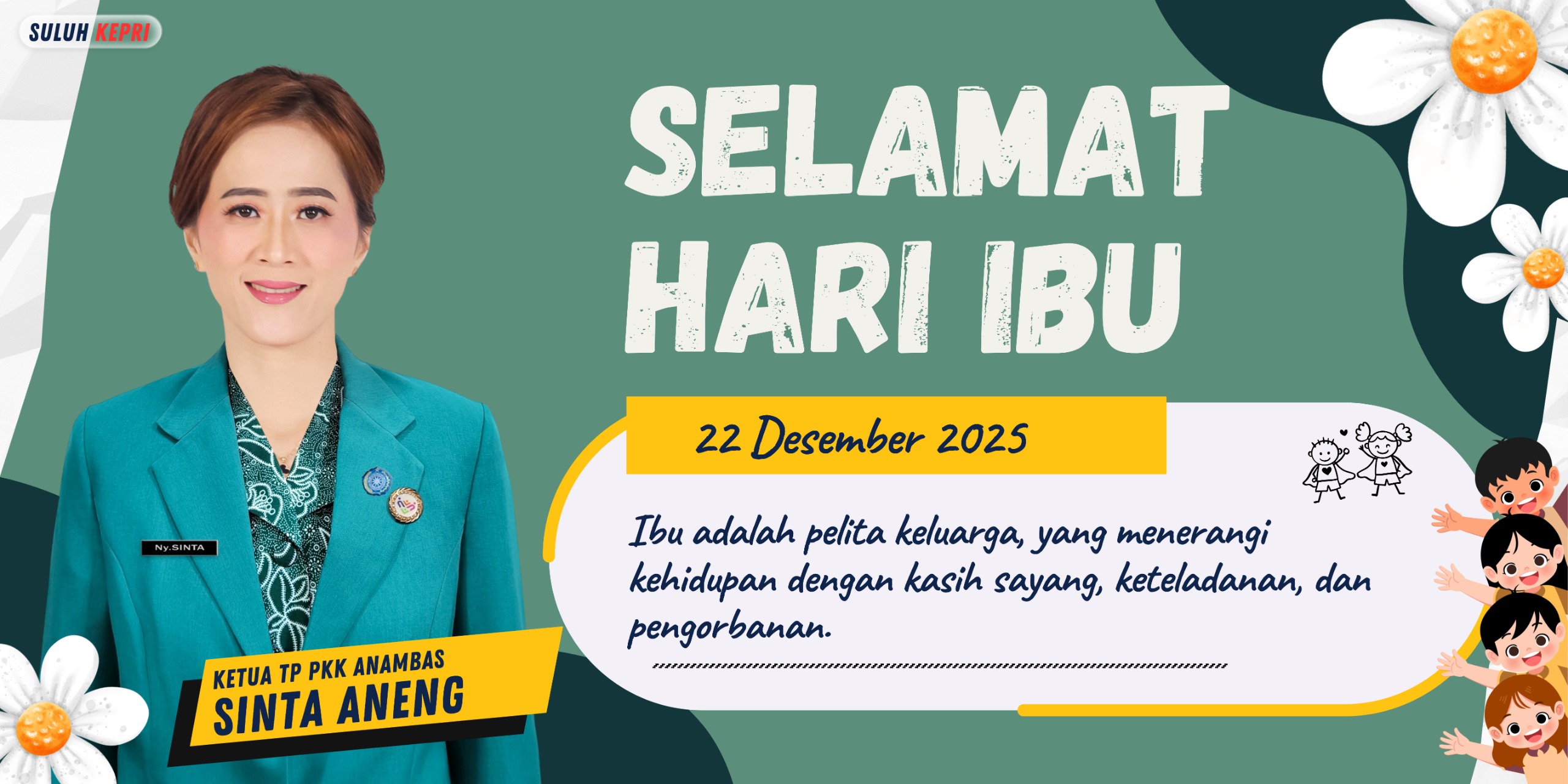 “Peringatan Hari Ibu di Indonesia menjadi momen refleksi bagi kita semua untuk menghargai peran ibu sebagai cahaya dalam keluarga, sekaligus mendorong perempuan agar terus berdaya dan berkarya demi terwujudnya Indonesia Emas 2045,” ungkap Ketua TP PKK Kabupaten Kepulauan Anambas tersebut.