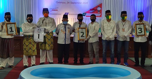 Pencabutan nomor urut ini dilaksanakan di gedung BPMS pada Kamis (24/09/2020). Terlihat seluruh pendukung ketiga pasangan calon tampak antusias diluar gedung BPMS Tarempa.