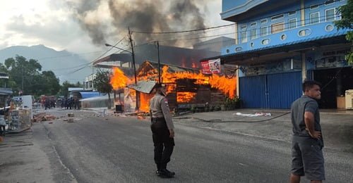 Kebakaran itu masih berlangsung hingga saat ini. mobil Damkar berusaha untuk memadamkan api.(*)